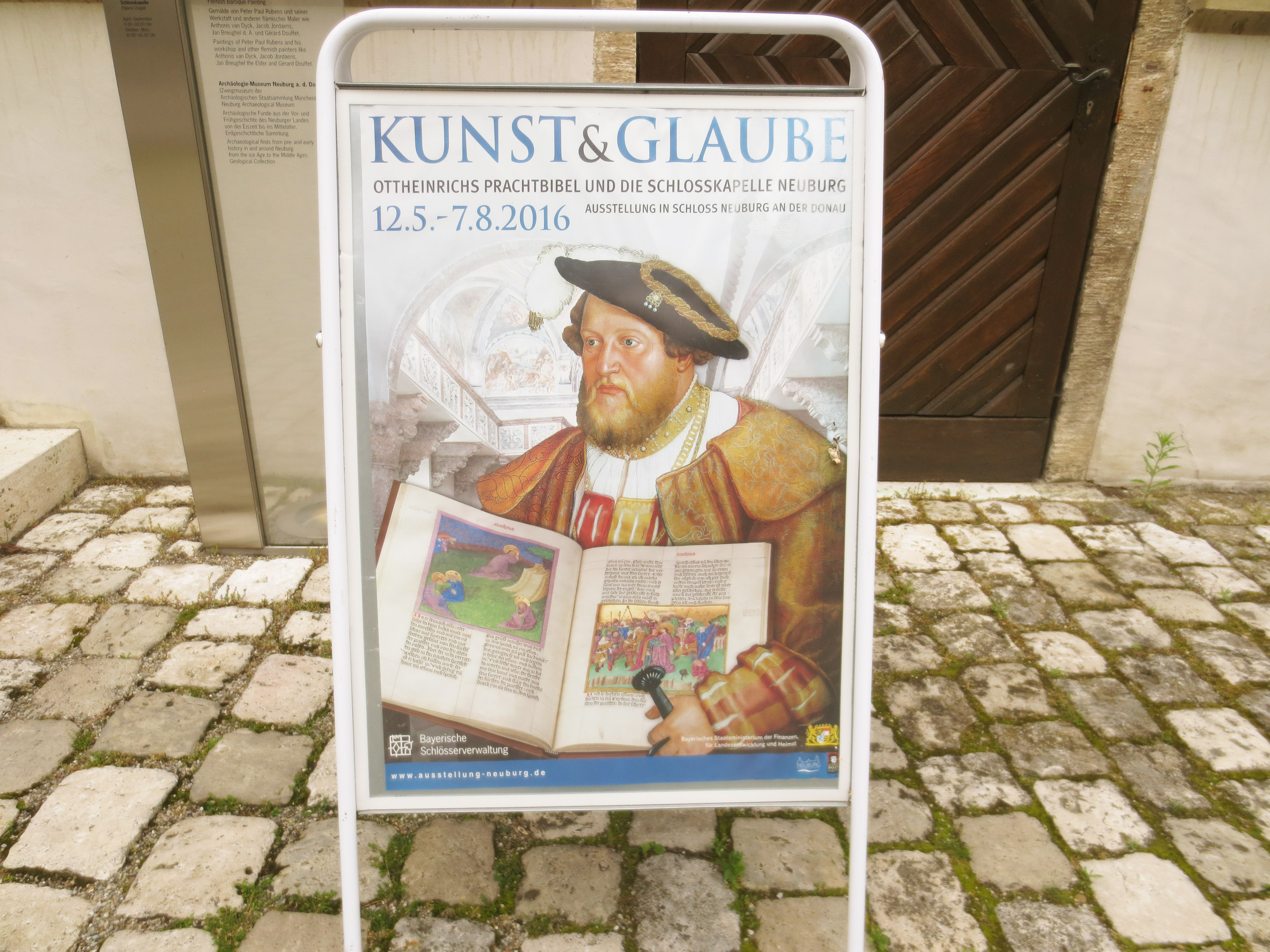 Die Schlosskapelle Neuburg ist der älteste für den protestantischen Ritus ausgestattete Kirchenraum in Deutschland. In 40 Szenen vermitteln Wand- und Deckengemälde der Kapelle ein eindrucksvolles Panorama biblischer Geschichte [Quelle: Ausstellungs-Flyer].