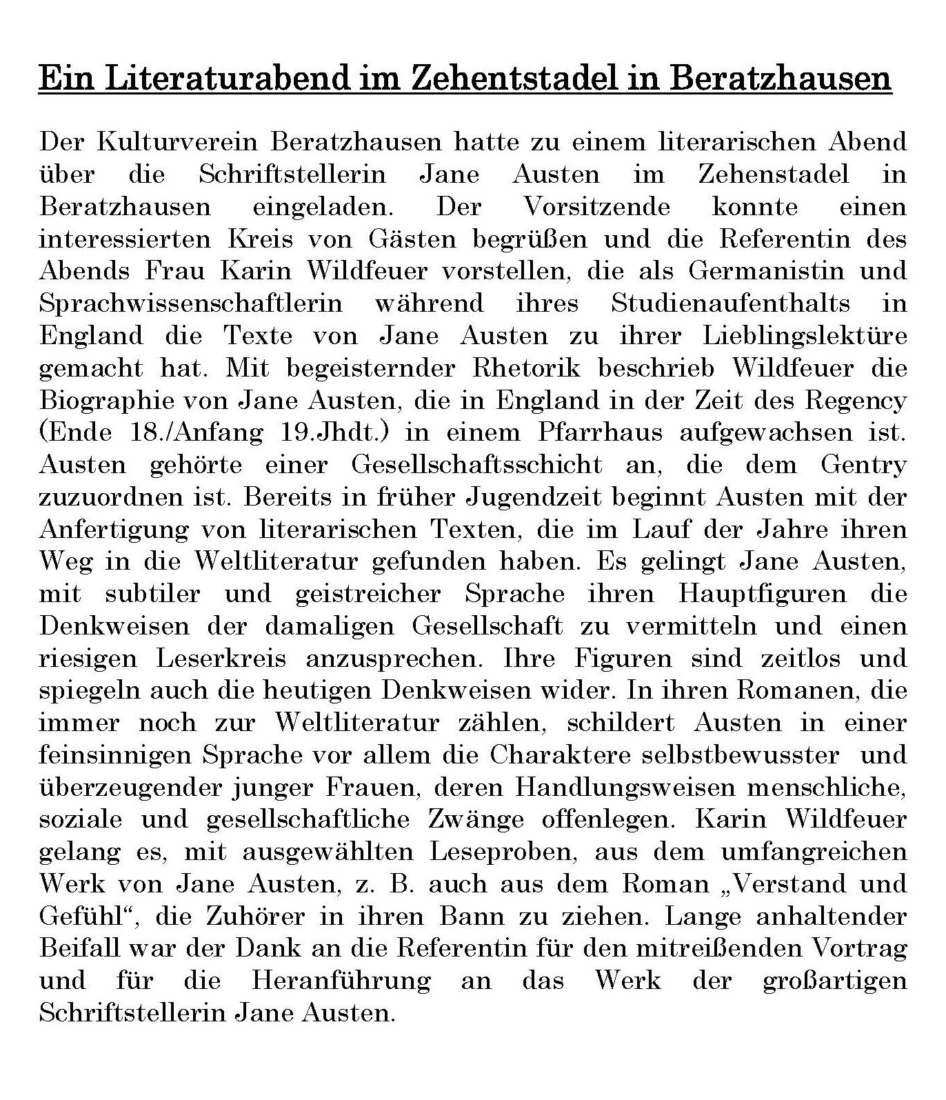 Literarischer Abend im Zehentstadel in Beratzhausen