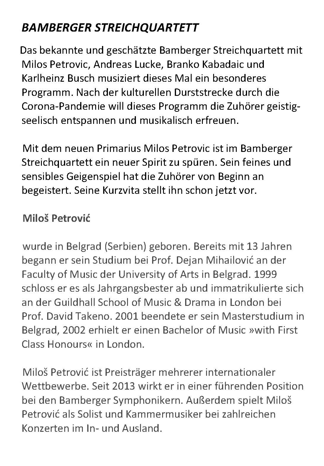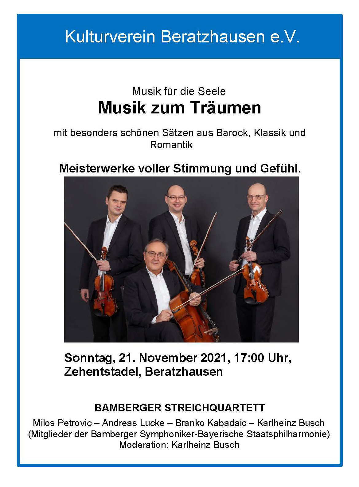 Zu unserem großen Bedauern musste das Konzert wegen der dramatischen Entwicklung der Pandemie abgesagt werden. Es besteht die Absicht, es im Jahr 2022 wieder anzubieten.
