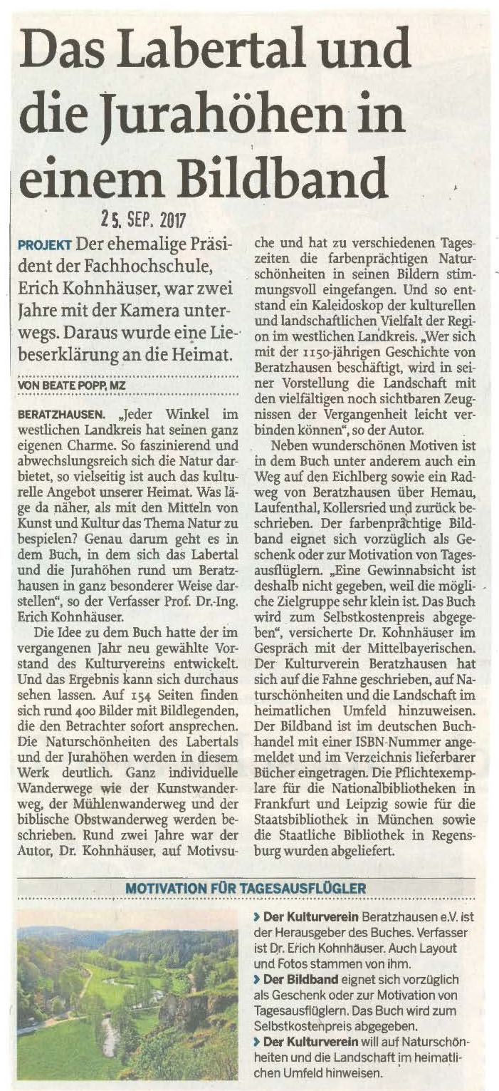 Bericht in der Mittelbayerischen Zeitung vom 25.09.2017.