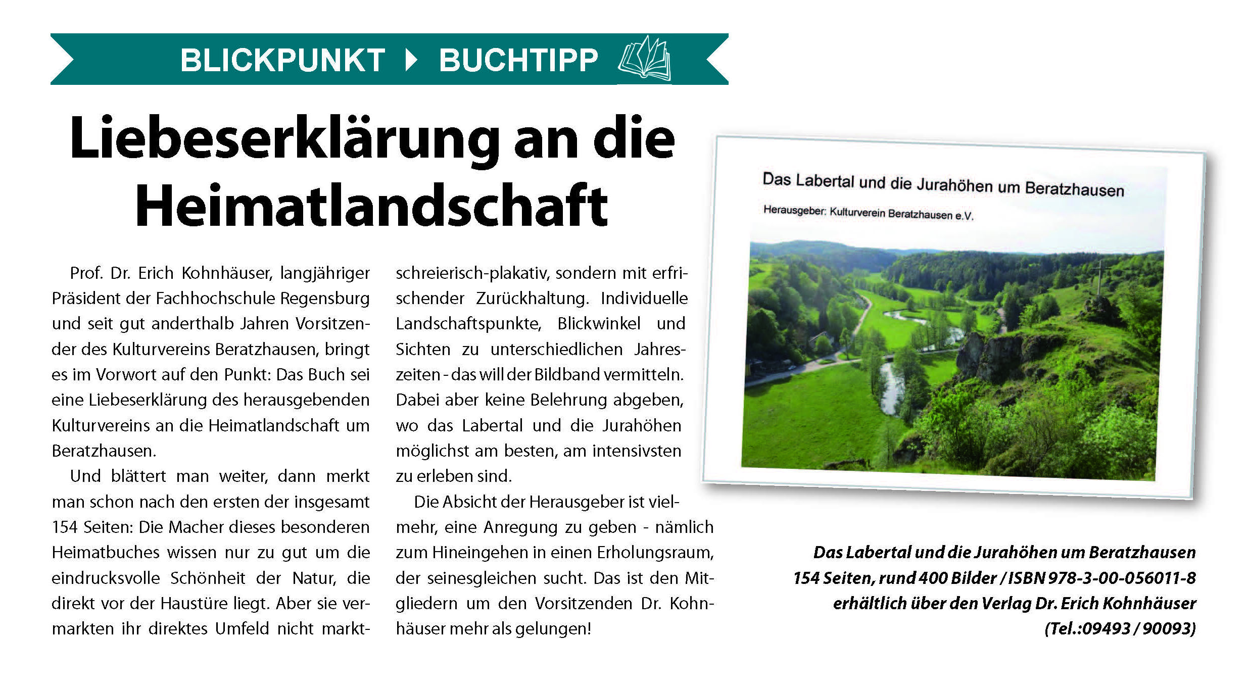 Das Buch ist hinterlegt bei den Nationalbibliotheken in Frankfurt und Leipzig sowie bei der Staatsbibliothek in München und der Staatlichen Bibliothek in Regensburg. Das Landratsamt Regensburg weist das Buch aus als Beitrag zum Programm KULTUR.LANDSCHAFTEN 2017. Weitere Hinweise sind über Google zu erhalten.